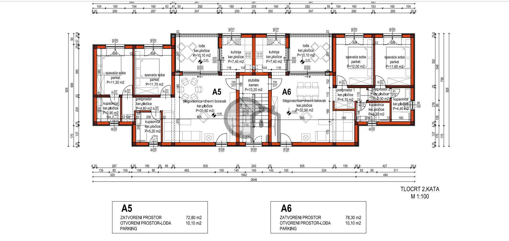 S6- dining room, kitchen, 2 bedrooms, 2 bathrooms, 2 hallways, loggia and parking space. Total housing: 78.30 m2 + loggia 7.6 m2 + parking 13.25 m2 = 316,000.00 EUR