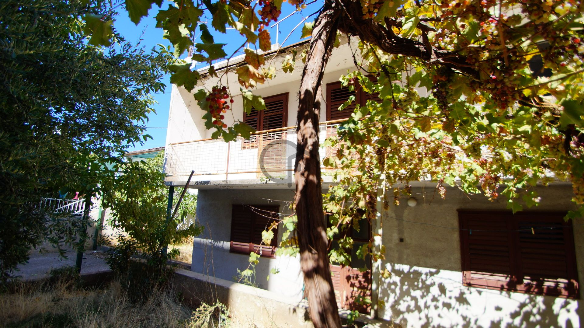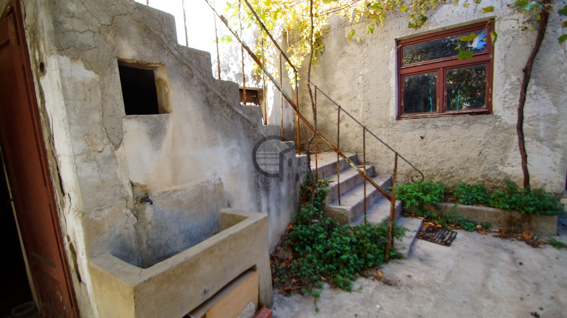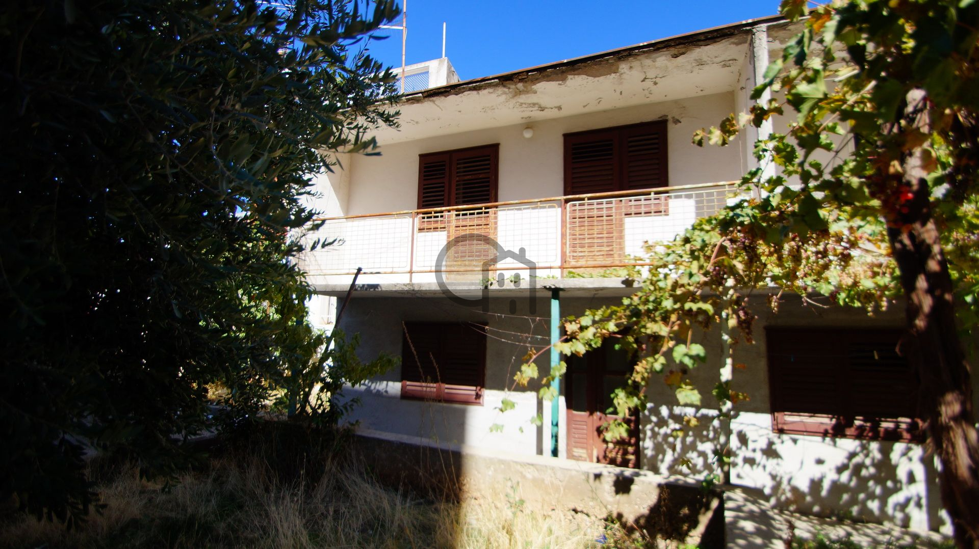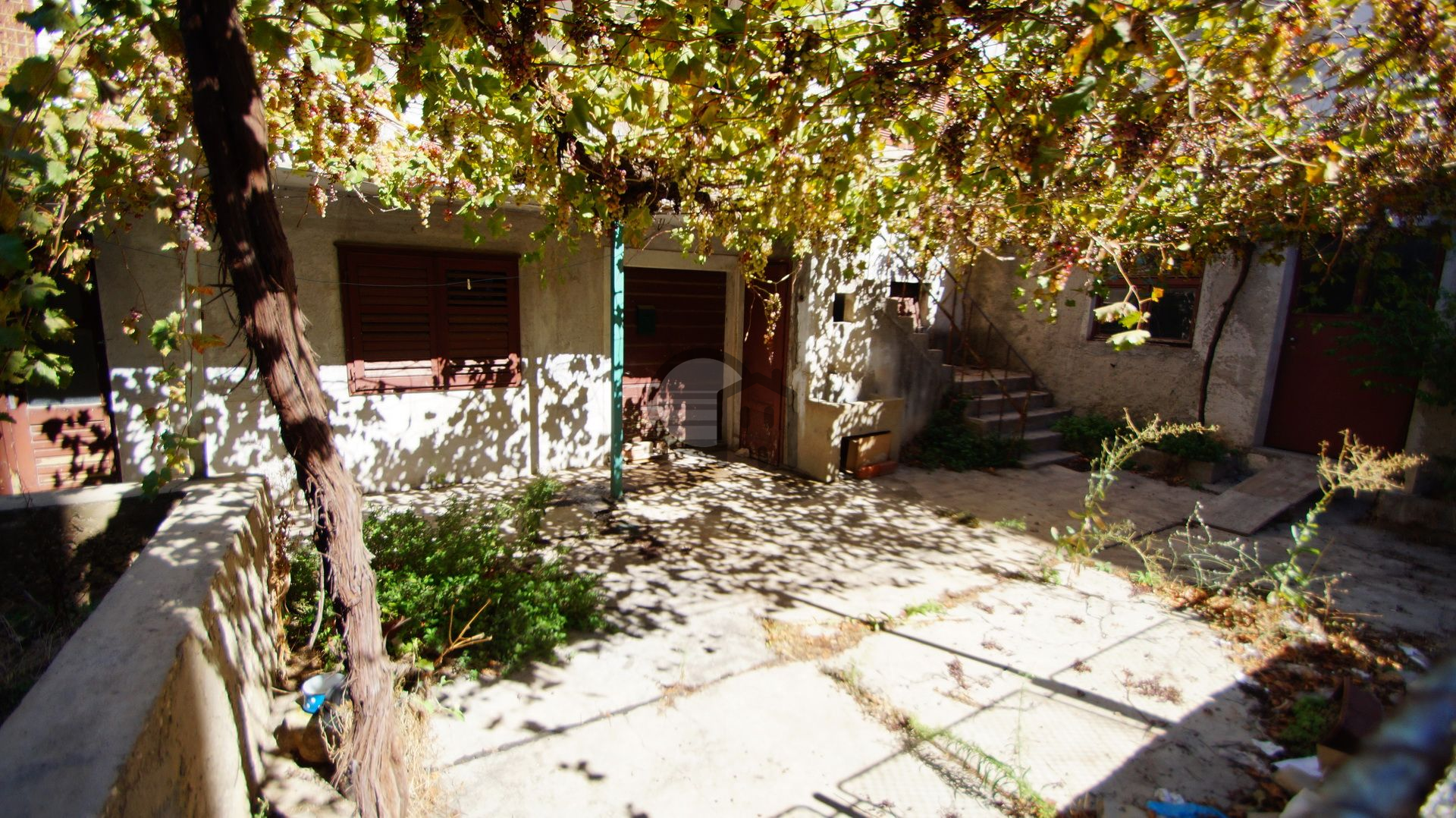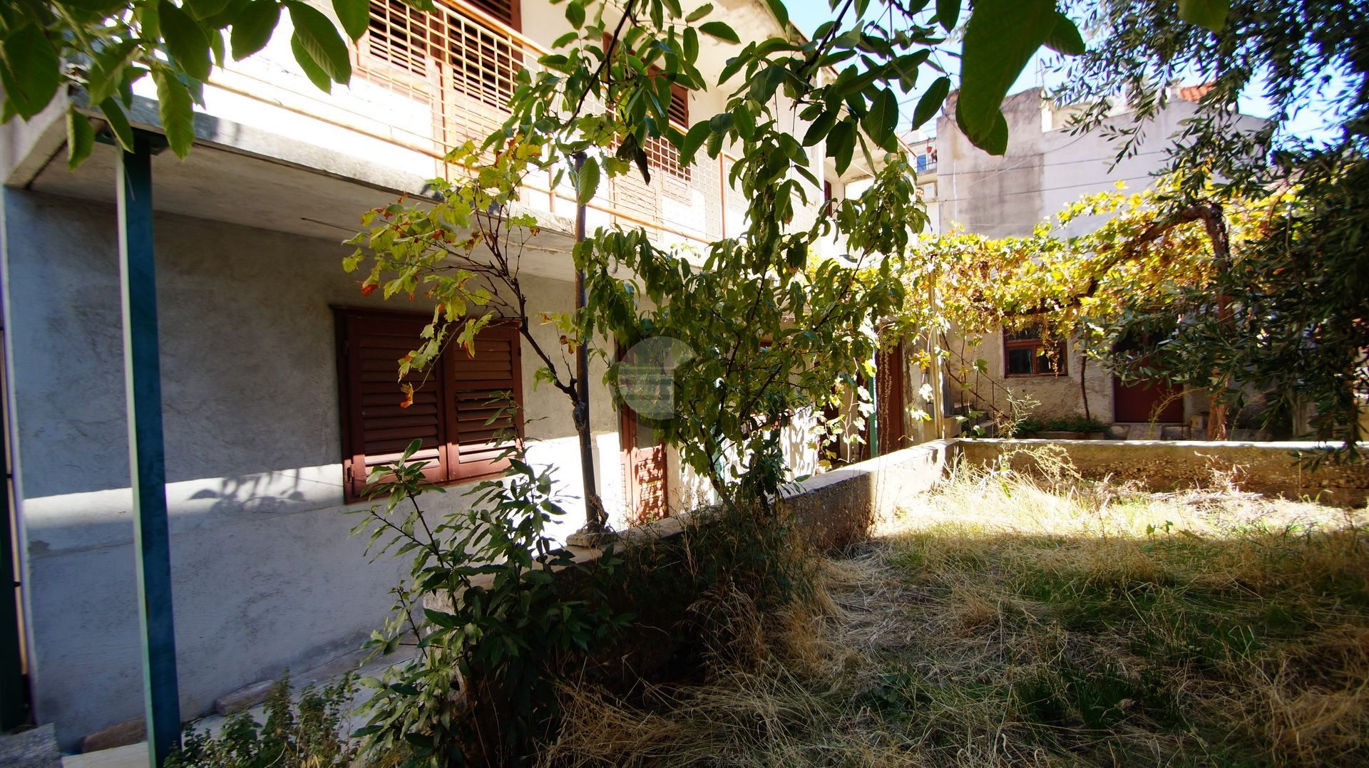 Im Erdgeschoss befindet sich eine große Taverne, eine Toilette unter der Treppe und eine Einzimmerwohnung (Eingangsbereich, Küche, Esszimmer, 2 separate Zimmer).