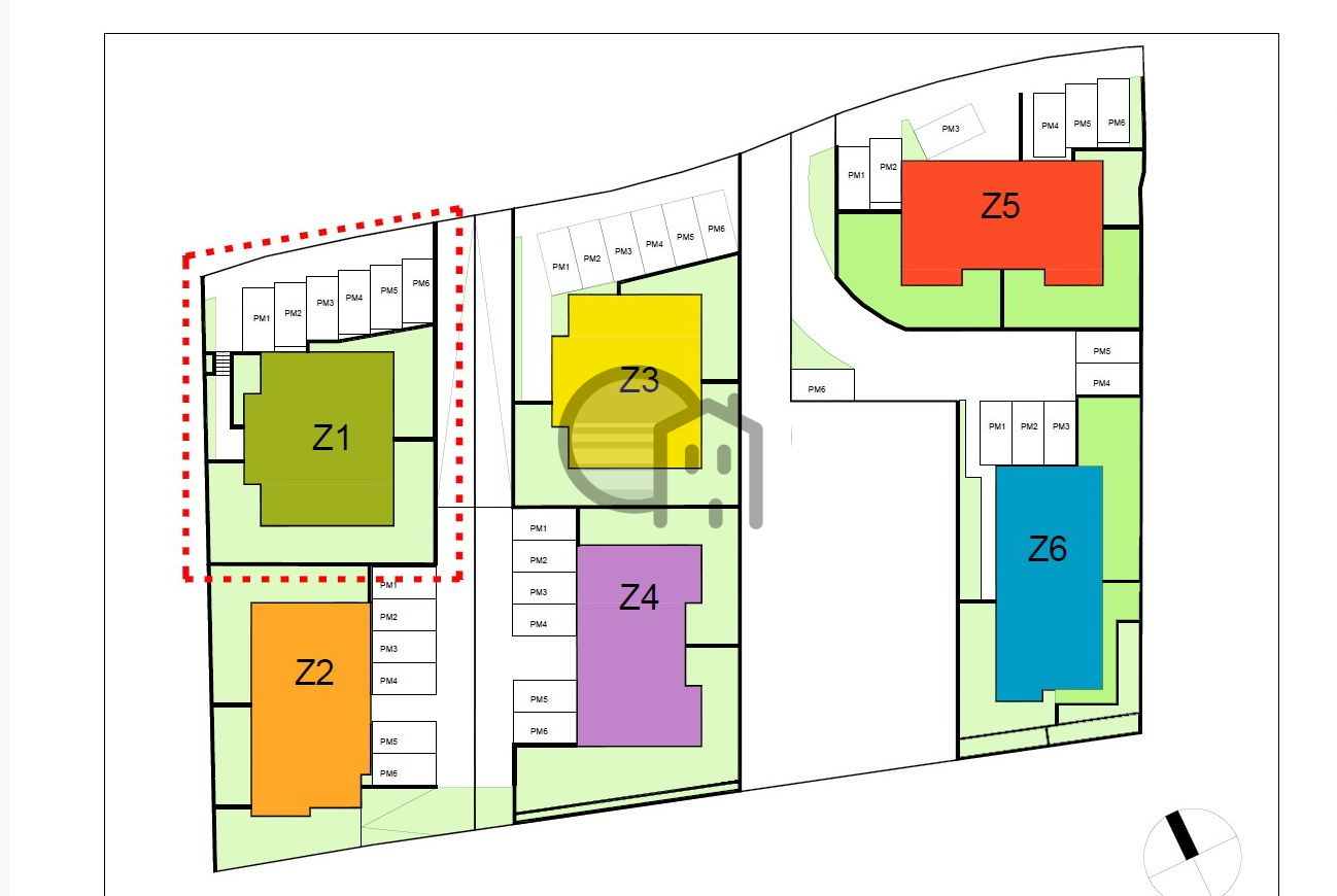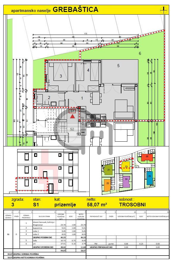 Apartment S1 - €192,000.00 Apartment S1 is located on the ground floor. It consists of two bedrooms, a bathroom, a kitchen, a living room and an open space dining room with an exit to the loggia. It has a garden of 37.91 m2. Total net usable area 58.07 m2. -SOLD