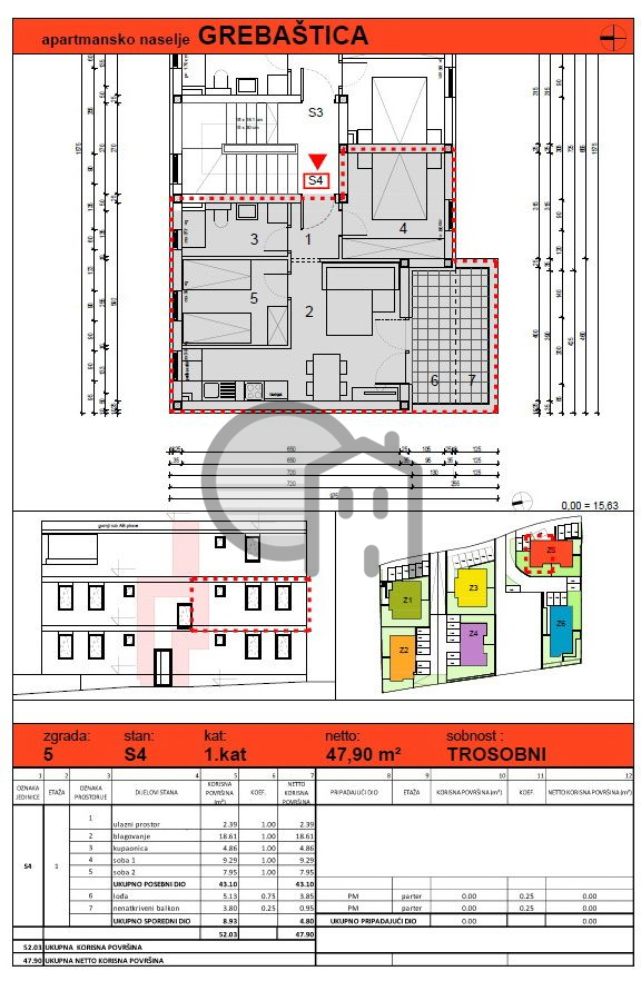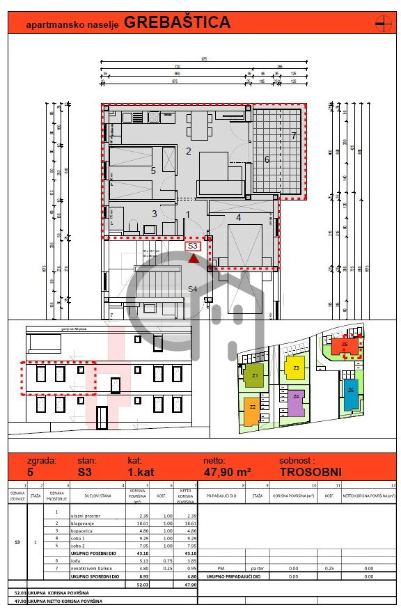 Apartment S3 - €210,000.00 Apartment S3 is located on the first floor, with a net usable area of 47.90 m2. It consists of two bedrooms, a bathroom, a living room, a kitchen and a dining room, as well as a loggia and an uncovered balcony. -SOLD