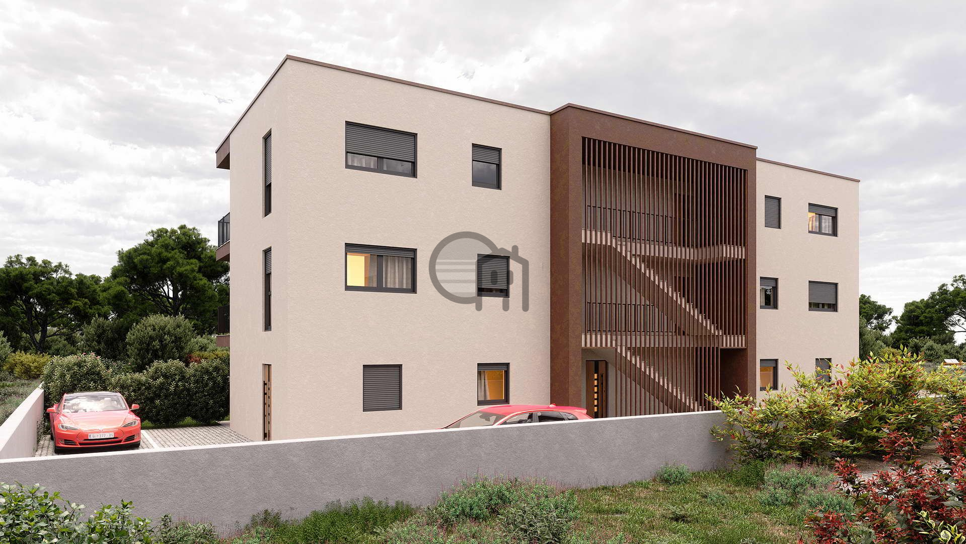 A modern newly built apartment is for sale, located in a quiet and highly sought-after area of Brodarica, just a few minutes from Šibenik. The apartment offers 42 m² of living space and a private courtyard of 60 m², perfect for a terrace, garden, or pleasant outdoor living. It also includes two outdoor parking spaces situated right next to the building. The total calculated area is 53 m², and the property is priced at €200,000. The planned completion of construction is scheduled for the end of 2026.