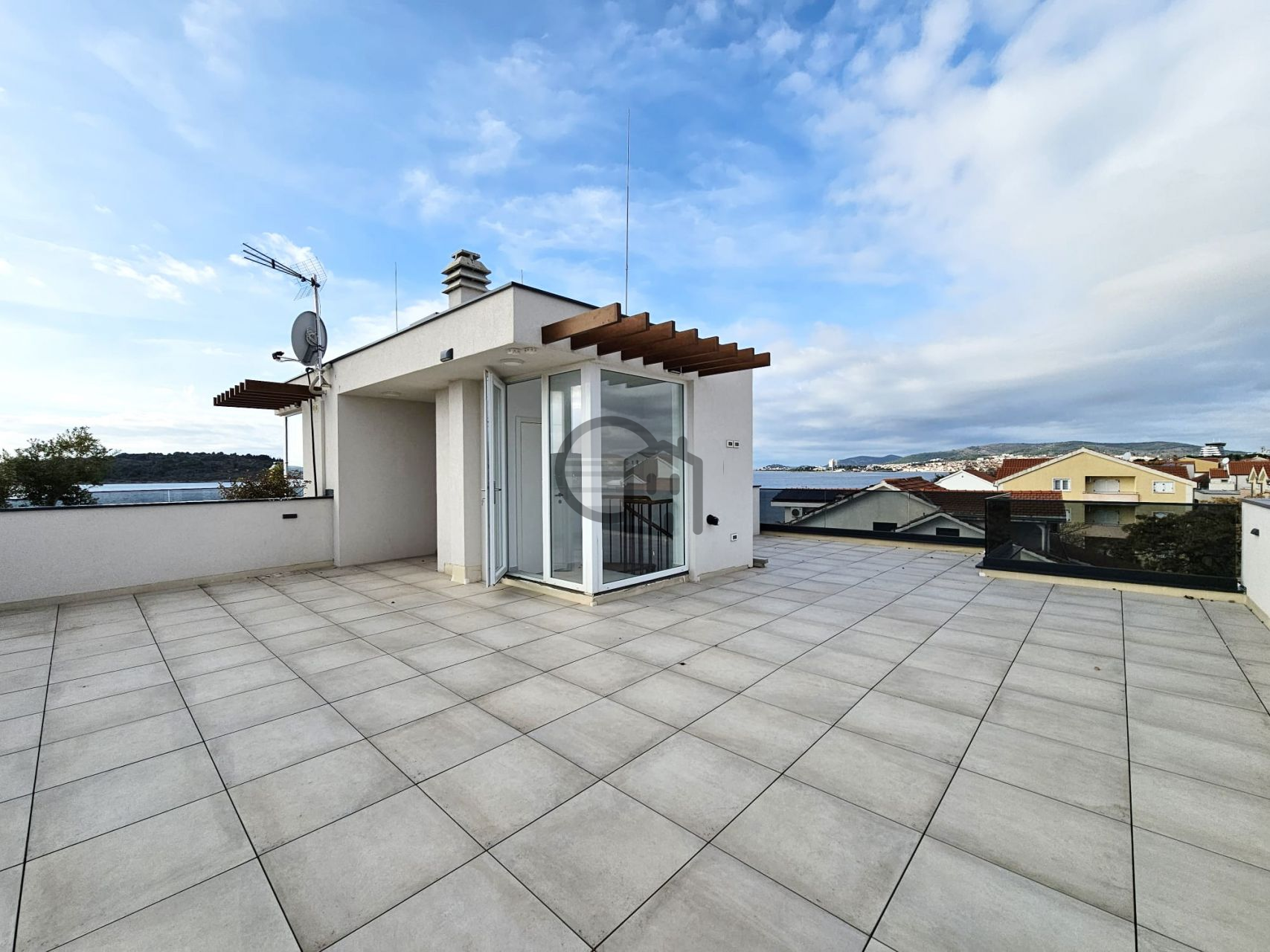 For sale is a penthouse apartment located in a modern new-build residential building completed in 2023, situated in a prime first-row-to-the-sea location in Srima. This exceptional property offers a high level of comfort, privacy, and breathtaking open sea views from both the east and west sides.